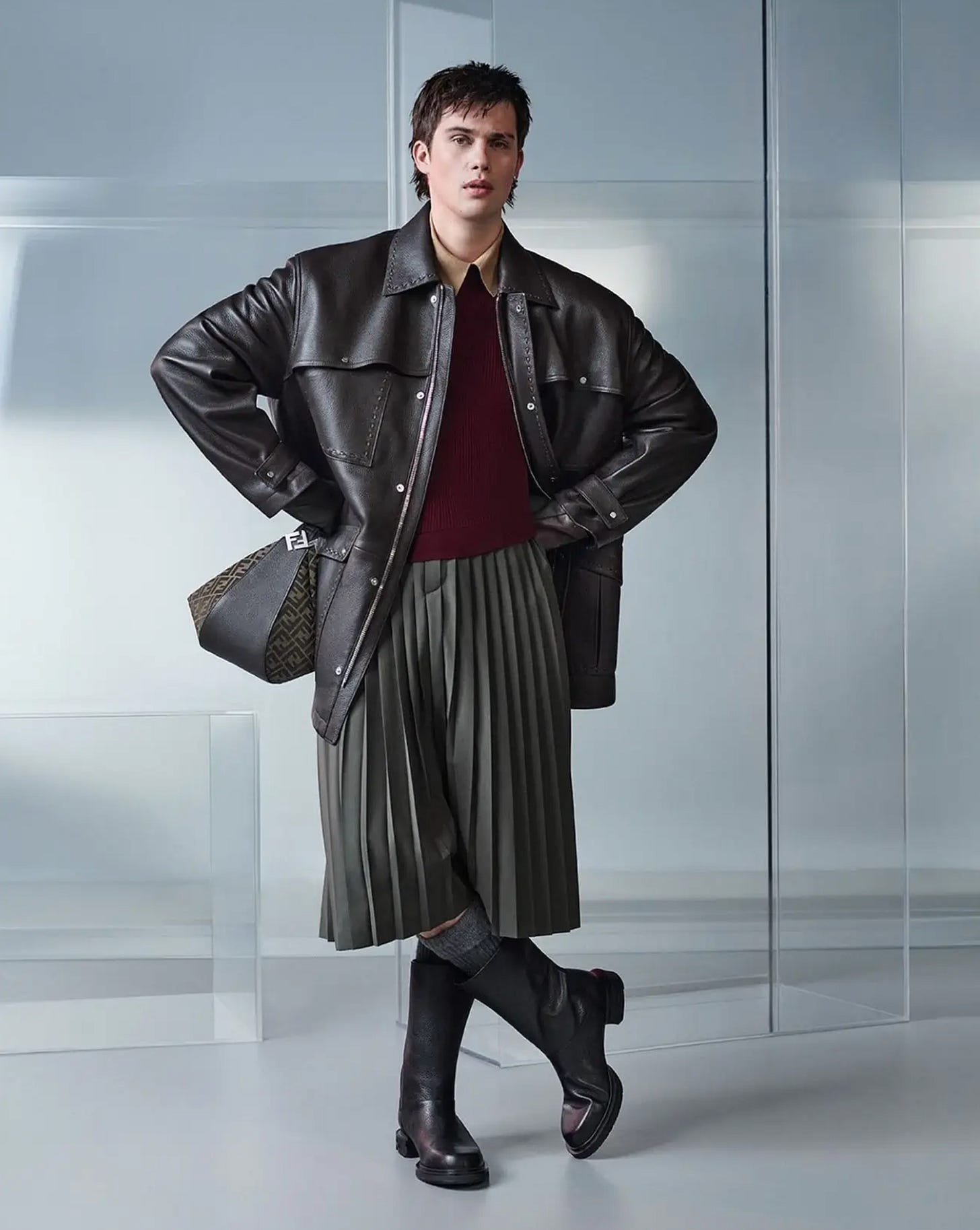 Galitzine's style, which effortlessly blends traditionally masculine and feminine elements, mirrors Fendi's ability to innovate while remaining true to its heritage. This fusion of classic and contemporary influences positions both Galitzine and Fendi as leading voices in the redefinition of modern masculinity. As Fendi continues to explore these themes, it contributes to a broader shift in fashion, where boundaries are increasingly blurred, and individuality reigns supreme."